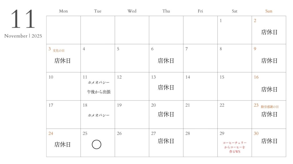 営業時間は12:00~17:00です。午前中はご予約制でコーヒー教室、チョコレートWSなどを開催致します。コーヒーセラピーのご予約も承ります。