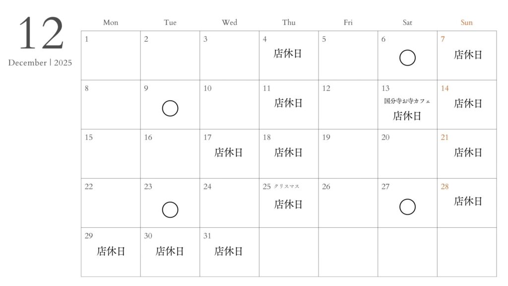 安芸国分寺お寺カフェ 12月13日(土)13:30~15:30